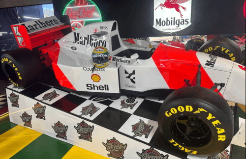 O Dream Car São Roque também valoriza o automobilismo de competição, exibindo carros e referências visuais que remetem ao universo da Fórmula 1. Esse tipo de peça é importante porque amplia o passeio para além dos carros de rua, aproximando o visitante da história das pistas, da estética das escuderias clássicas e da paixão mundial pelas corridas.