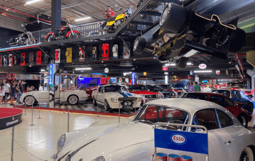 → Para uma visita rápida, foque primeiro nos carros de cinema, no Batmóvel, na Lamborghini Diablo, no DeLorean e nas áreas temáticas mais recentes como o espaço da F1.