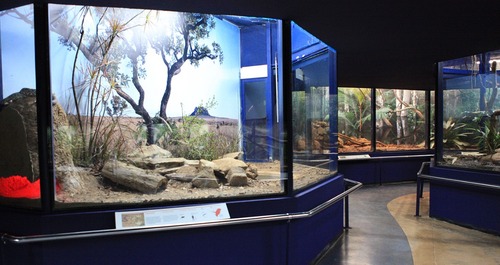 O Museu Biológico apresenta uma exposição viva com serpentes, lagartos, anfíbios, aranhas e escorpiões em recintos que recriam seus habitats.