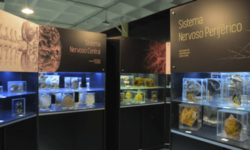 Uma das áreas mais interessantes da visita é a galeria dedicada ao sistema nervoso central e ao sistema nervoso periférico. As vitrines exibem peças e materiais que ajudam a visualizar a organização do cérebro, da medula, dos nervos e de estruturas relacionadas à comunicação entre o corpo e o sistema nervoso.