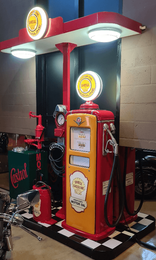 Bomba de combustível vintage e memorabilia de posto antigo