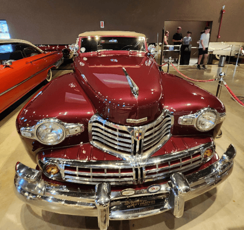 No Museu do Automóvel Pomerode, este automóvel de luxo em tom vinho se destaca pela dianteira cromada, pelos faróis expressivos e pelo acabamento refinado, características muito associadas à elegância dos grandes carros americanos do pós-guerra. É uma peça que costuma render boas fotos e reforça o caráter sofisticado do acervo permanente.