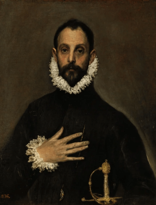Um dos retratos mais famosos de El Greco no Prado, marcante pelo contraste entre o preto austero da roupa e a gola branca, além do gesto da mão, que costuma ser interpretado como sinal de honra, juramento ou identidade social. Também é uma peça-chave para notar o estilo do artista já na Espanha: figuras alongadas, espiritualidade e dramaticidade contida.