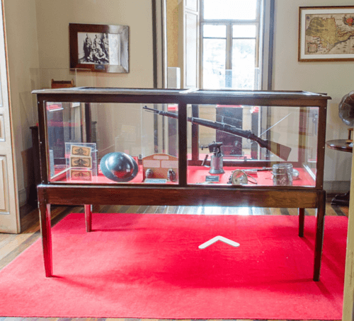 Objetos históricos em vitrines expositivas
