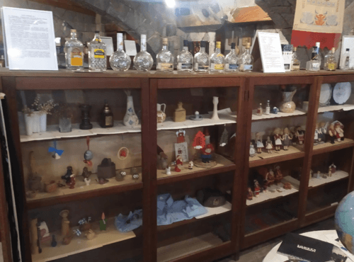 As vitrines do Museu Finlandês Eva Hilden reúnem pequenos objetos, garrafas, miniaturas, louças, lembranças decorativas, bonecos e peças de uso cotidiano que ajudam a contar a história da comunidade finlandesa em Penedo. Esses itens mostram que o acervo não é formado apenas por documentos históricos, mas também por objetos afetivos, ligados à vida doméstica, às tradições familiares e às lembranças trazidas ou preservadas pelos imigrantes.