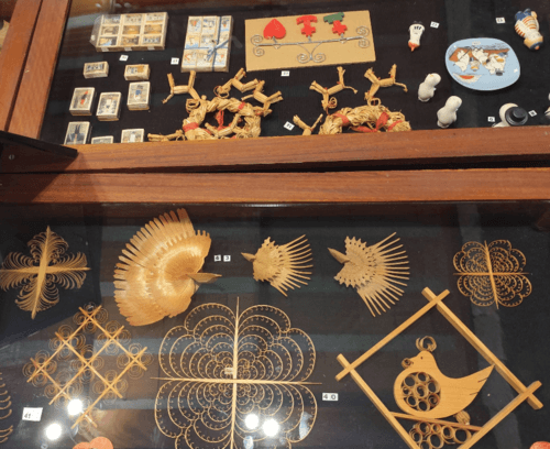 O artesanato em palha, madeira e fibras naturais é um dos destaques mais delicados do Museu Finlandês Eva Hilden. As peças demonstram técnicas manuais associadas à tradição nórdica e ao trabalho artesanal preservado pela comunidade. Enfeites, pássaros, formas geométricas e objetos decorativos revelam a importância da habilidade manual como expressão cultural e como forma de manter viva a memória dos costumes finlandeses.