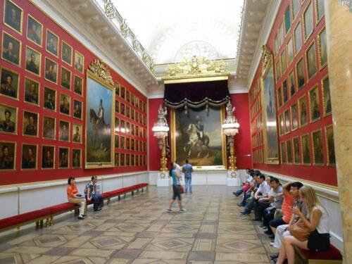 Alguns ambientes do Museu Hermitage preservam de forma muito clara a ideia de representação imperial, com grandes galerias, retratos, símbolos de poder e salões usados para marcar a solenidade da antiga corte russa. Esses espaços ajudam a compreender o museu não apenas como um local de exposições, mas também como parte viva da memória política e cerimonial do império.