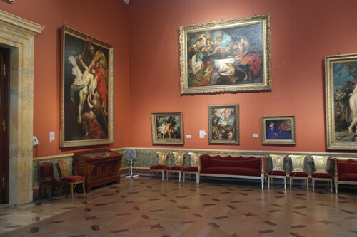 Entre os grandes destaques do acervo do Museu Hermitage estão as galerias dedicadas à pintura europeia, com obras expostas em ambientes que já impressionam por si só. Essas salas ajudam a mostrar a força do museu como guardião de coleções ligadas à arte ocidental, com quadros de grande formato, molduras monumentais e um ambiente que valoriza a experiência contemplativa.
