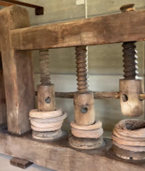 O acervo do Museu Nacional de Imigração e Colonização ganha ainda mais valor ao reunir peças ligadas ao trabalho manual e às técnicas tradicionais de produção. A prensa de madeira mostrada na imagem é um exemplo expressivo desse universo, pois ajuda a contar como o esforço físico, os saberes práticos e os engenhos mecânicos faziam parte da organização econômica e produtiva do cotidiano.